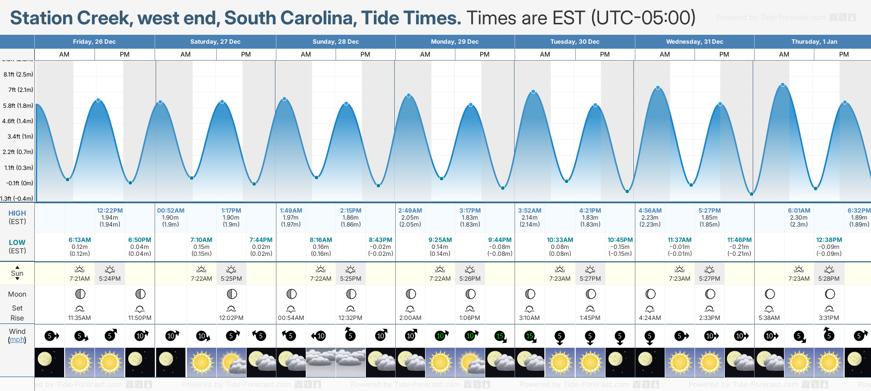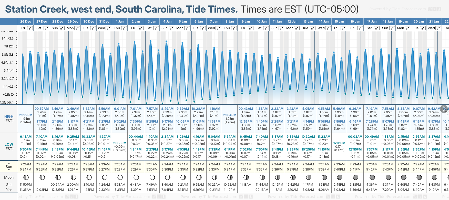 NOTE: Use of this site for Station Creek, west end, South Carolina tide times is subject to our terms.