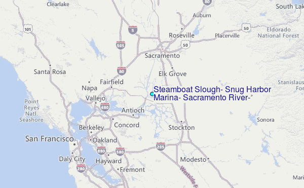 Use this relief map to navigate to tide stations, surf breaks and cities that are in the area of Steamboat Slough, Snug Harbor Marina, Sacramento River, California.