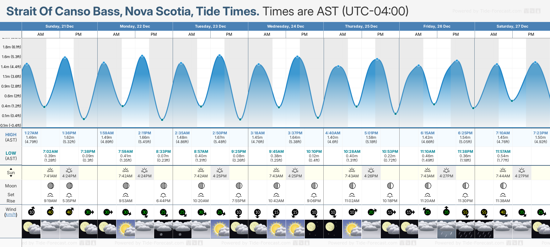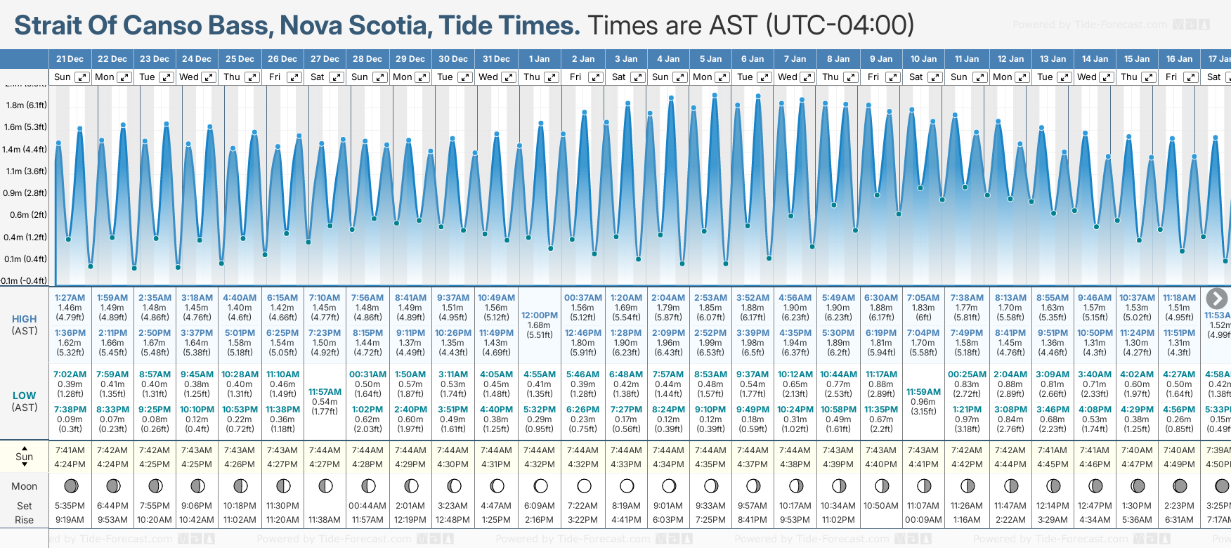 Tide Times for Strait Of Canso Bass (tomorrow): Sunday 21 December 2025