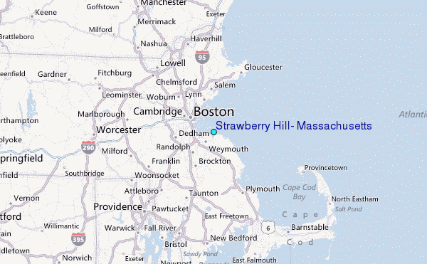 Use this relief map to navigate to tide stations, surf breaks and cities that are in the area of Strawberry Hill, Massachusetts.
