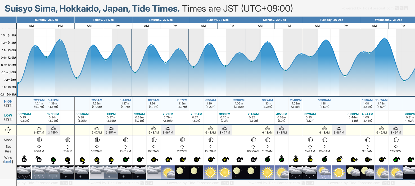 Today's tide times for Suisyo Sima, Hokkaido, Japan