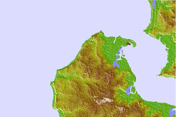 Use this relief map to navigate to tide stations, surf breaks and cities that are in the area of Sukuta.