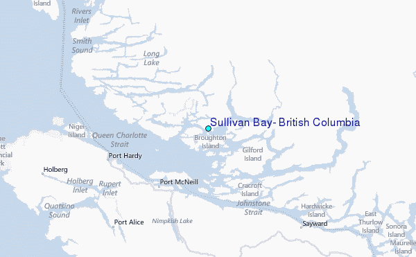 Use this relief map to navigate to tide stations, surf breaks and cities that are in the area of Sullivan Bay, British Columbia.