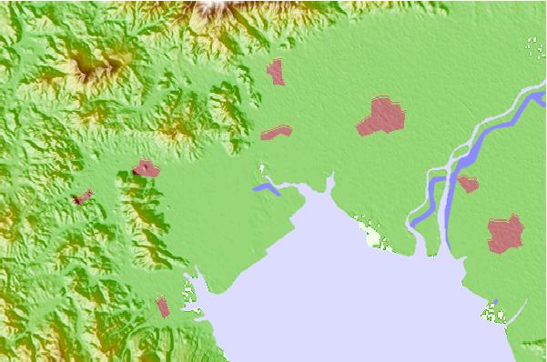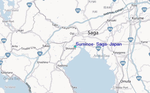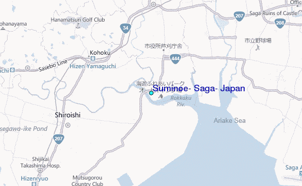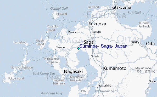 Use this relief map to navigate to tide stations, surf breaks and cities that are in the area of Suminoe, Saga, Japan.