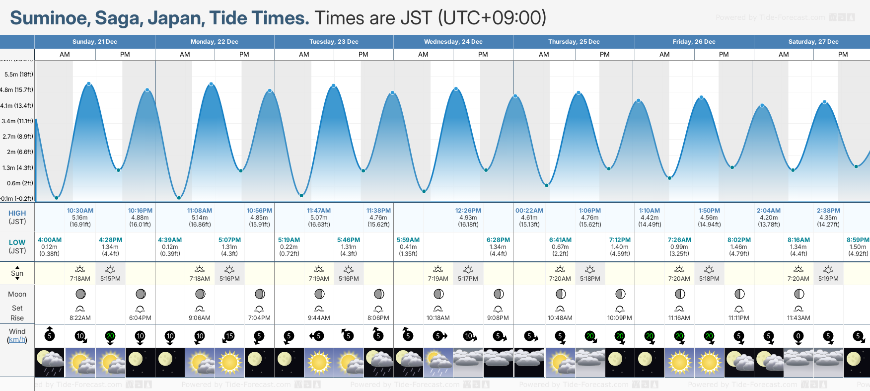 NOTE: Use of this site for Suminoe, Saga, Japan tide times is subject to our terms.