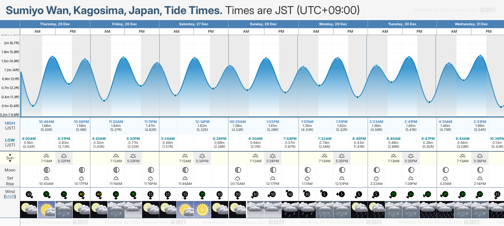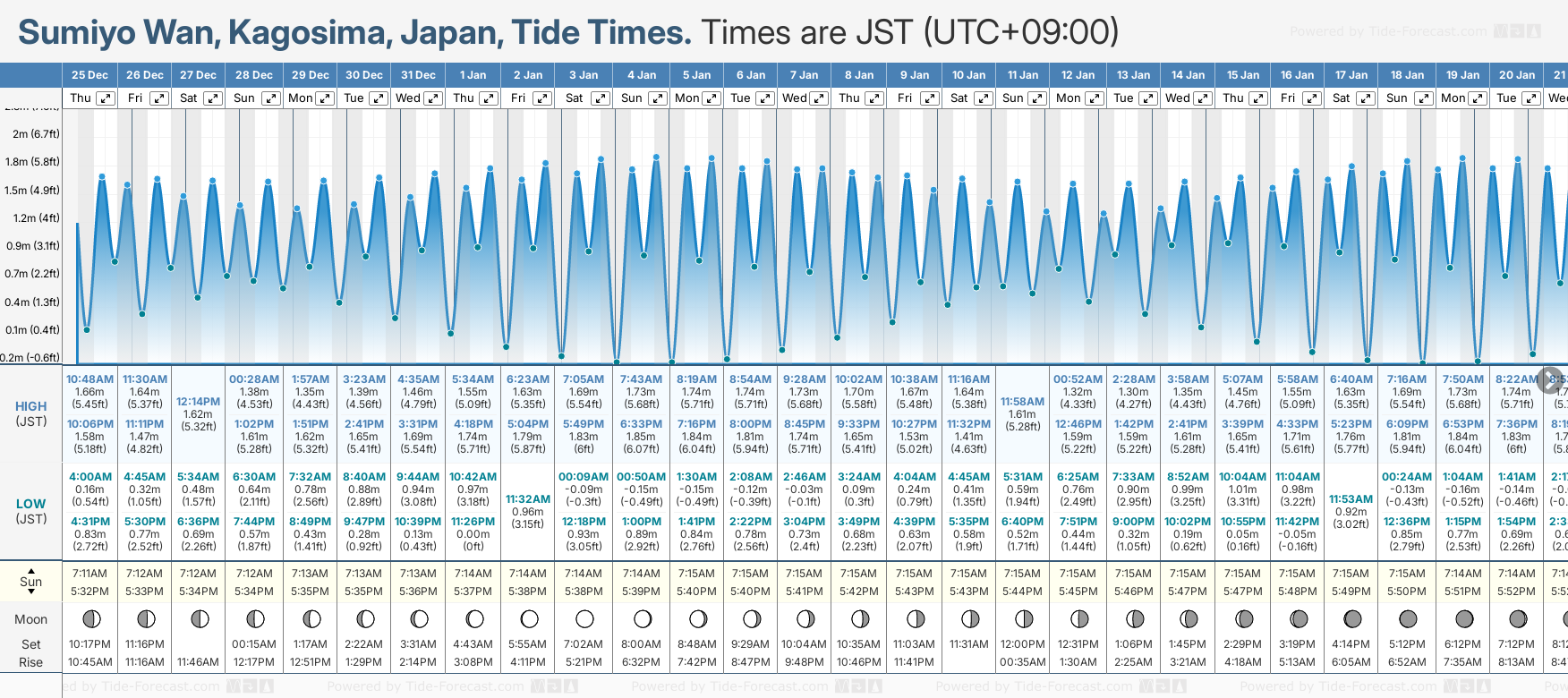 Today's tide times for Sumiyo Wan, Kagosima, Japan