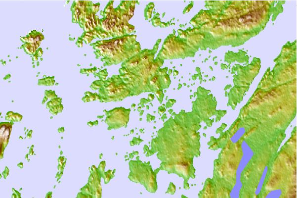 Use this relief map to navigate to tide stations, surf breaks and cities that are in the area of Summerford, Newfoundland.