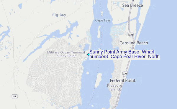 Other Nearby Locations' tide tables and tide charts to Sunny Point Army Base, Wharf number3, Cape Fear River, North Carolina:
