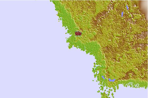 Use this relief map to navigate to tide stations, surf breaks and cities that are in the area of Suwannee River entrance, Florida.