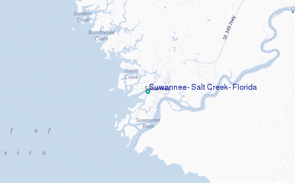 Use this relief map to navigate to tide stations, surf breaks and cities that are in the area of Suwannee, Salt Creek, Florida.