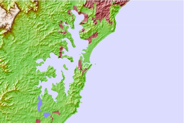 Use this relief map to navigate to tide stations, surf breaks and cities that are in the area of Swansea, Australia.