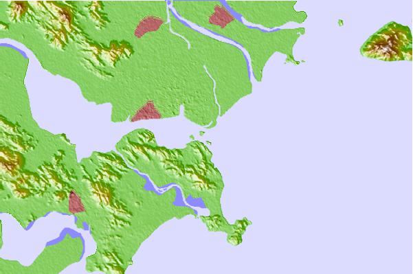 Use this relief map to navigate to tide stations, surf breaks and cities that are in the area of Swatow, China.
