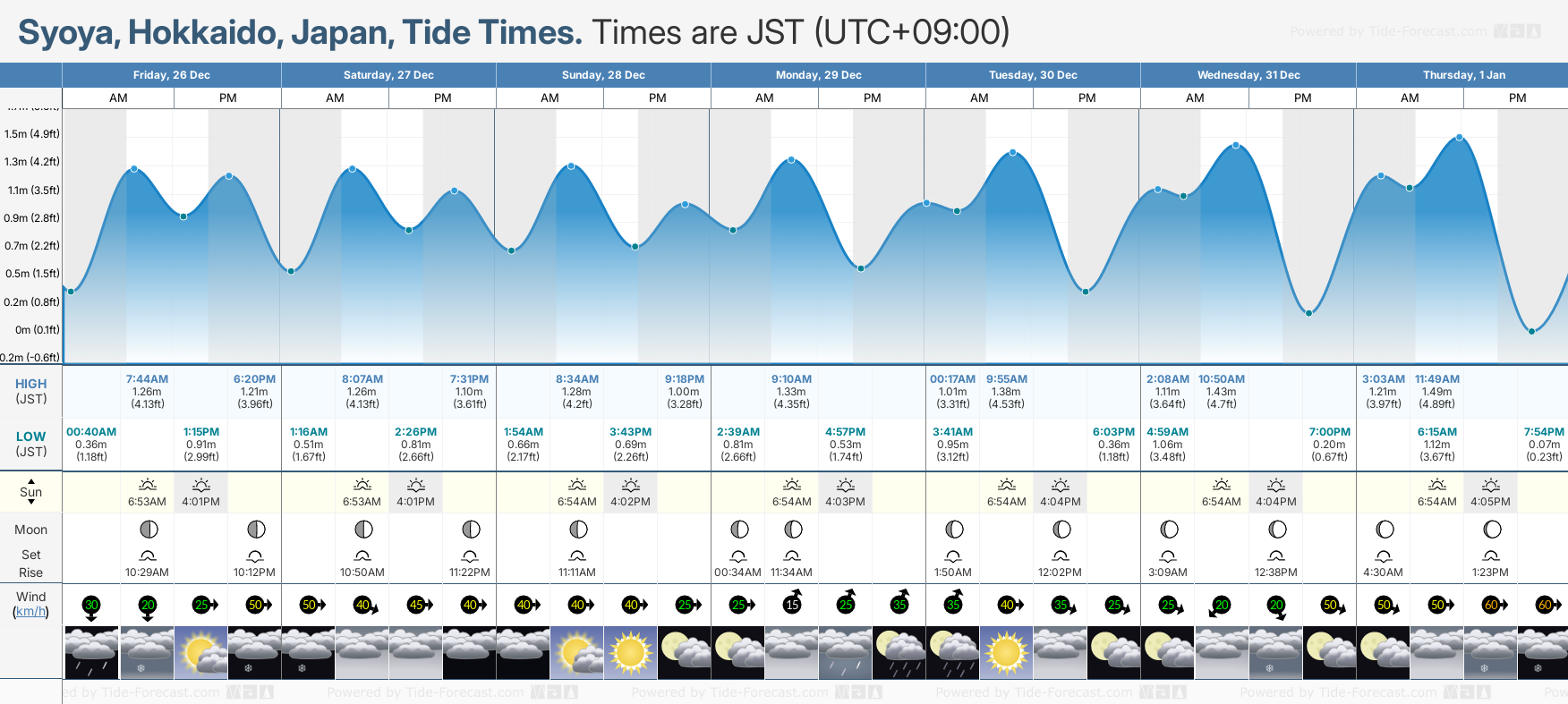 Tide Times for Syoya (tomorrow): Friday 26 December 2025