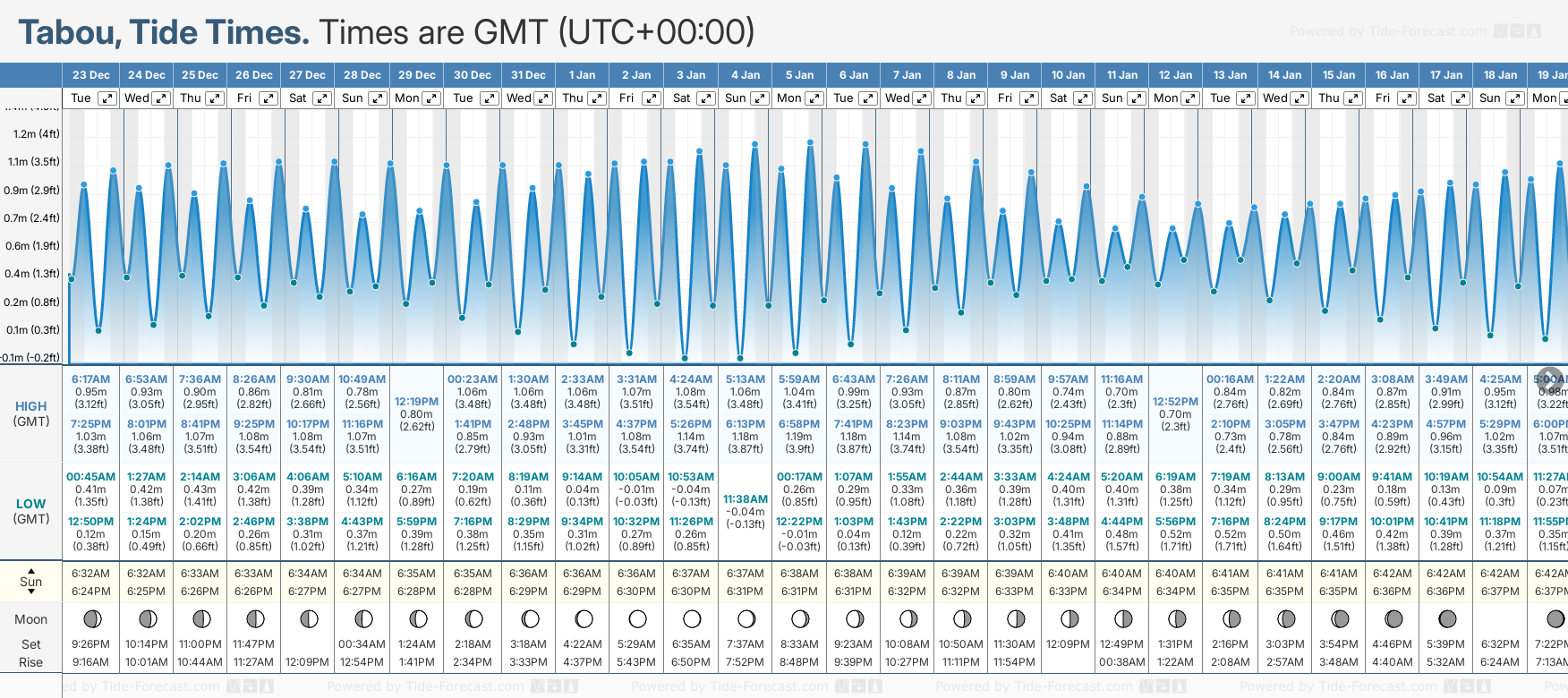 Tabou tide times for December and January