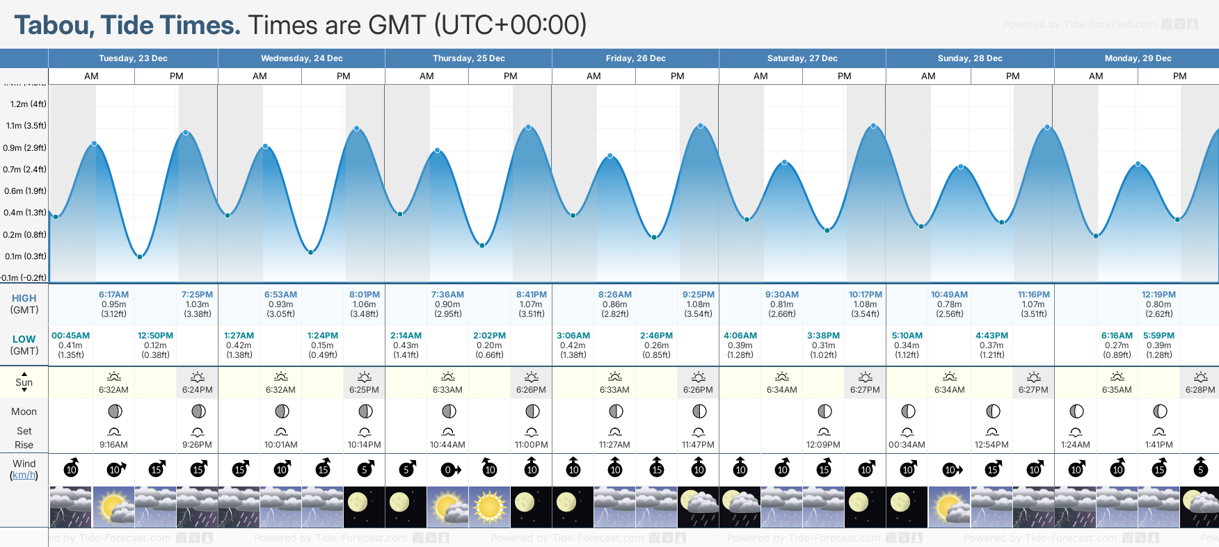 Tide Times for Tabou: Monday 29 December 2025