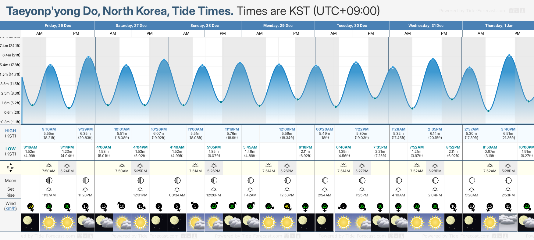 Tide Times for Taeyonp'yong Do (tomorrow): Friday 26 December 2025