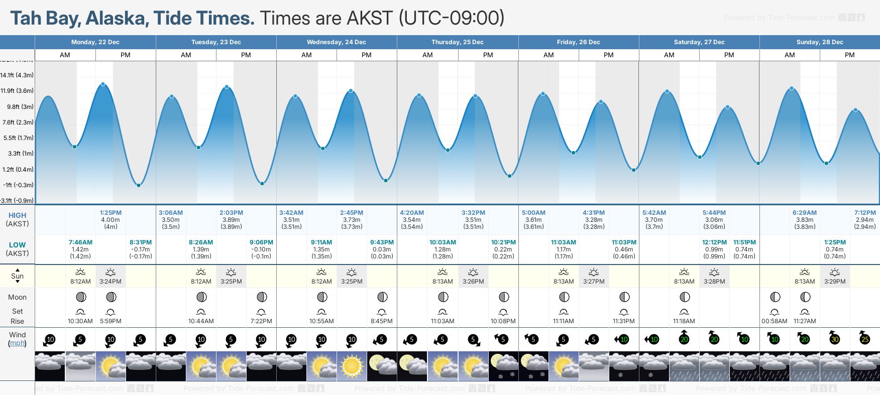 NOTE: Use of this site for Tah Bay, Alaska tide times is subject to our terms.