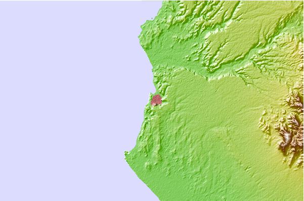 Use this relief map to navigate to tide stations, surf breaks and cities that are in the area of Talara, Peru.
