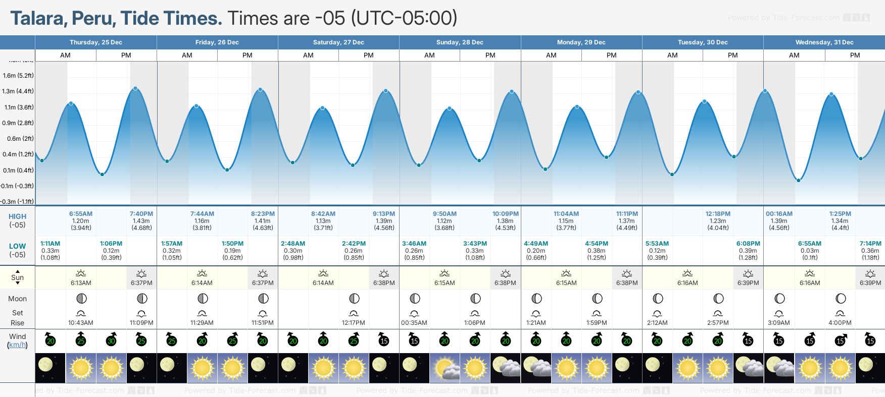 NOTE: Use of this site for Talara, Peru tide times is subject to our terms.