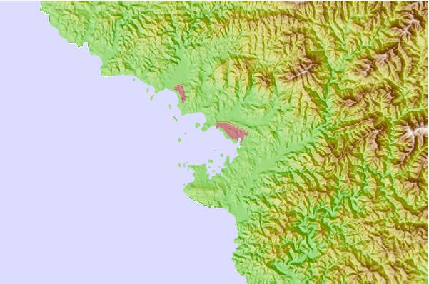 Use this relief map to navigate to tide stations, surf breaks and cities that are in the area of Tanabe, Wakayama, Japan.