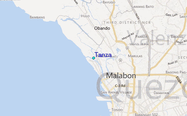 Use this relief map to navigate to tide stations, surf breaks and cities that are in the area of Tanza.