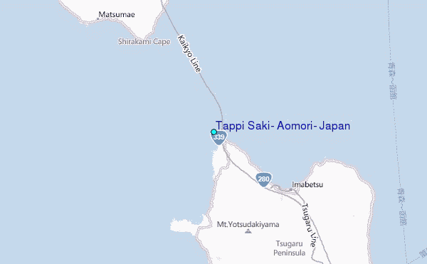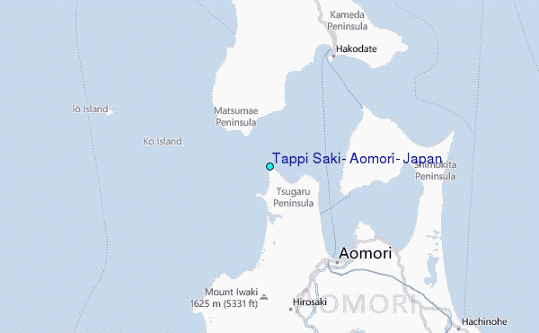 Use this relief map to navigate to tide stations, surf breaks and cities that are in the area of Tappi Saki, Aomori, Japan.