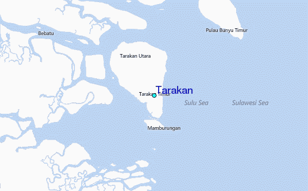 Use this relief map to navigate to tide stations, surf breaks and cities that are in the area of Tarakan.