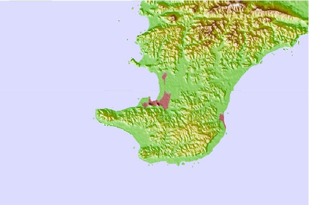 Use this relief map to navigate to tide stations, surf breaks and cities that are in the area of Tateyama, Tiba, Japan.