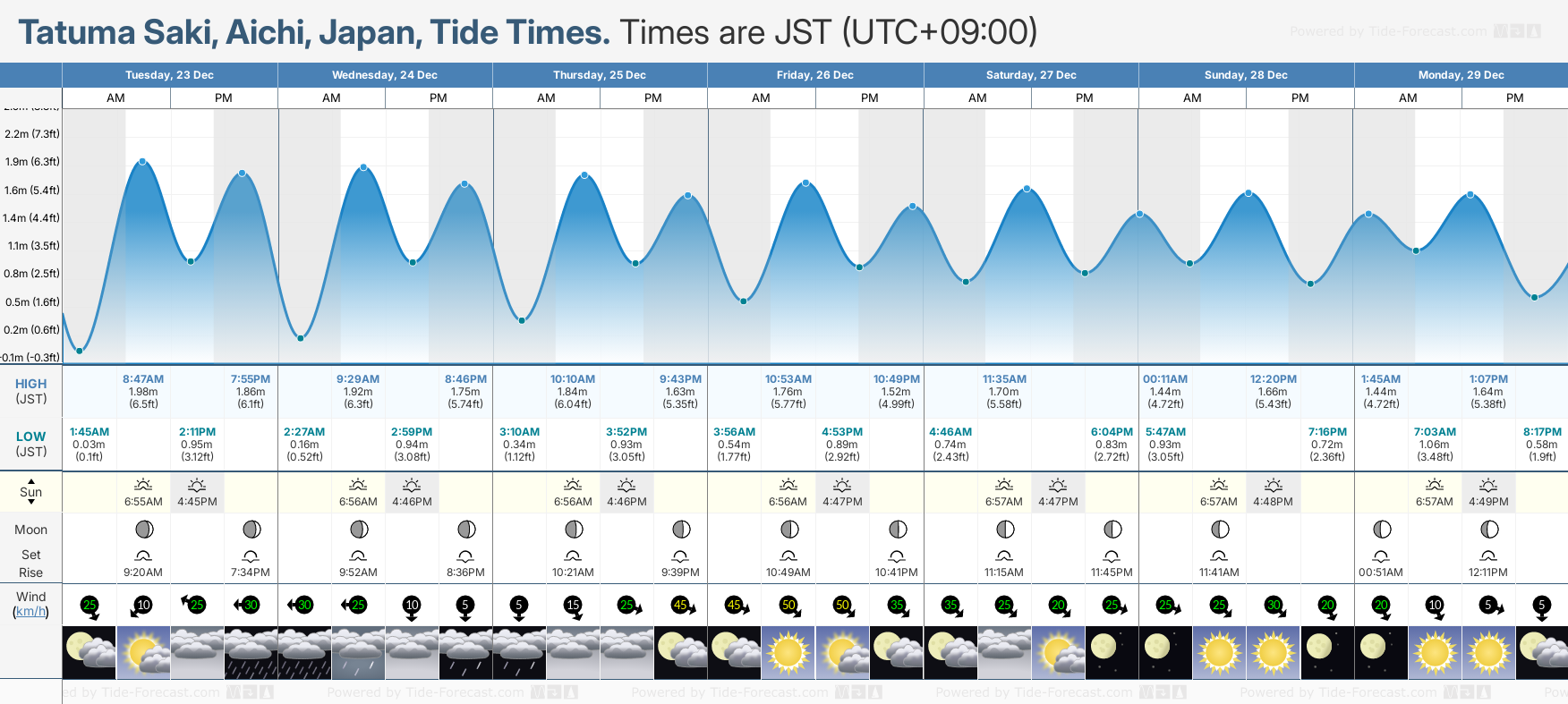 Tide Times for Tatuma Saki: Monday 29 December 2025