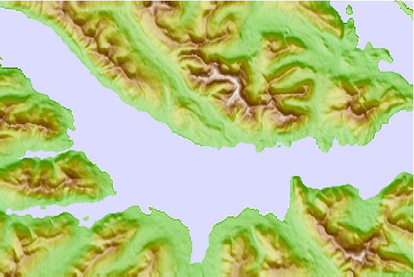Use this relief map to navigate to tide stations, surf breaks and cities that are in the area of Tenakee Springs, Tenakee Inlet, Alaska.
