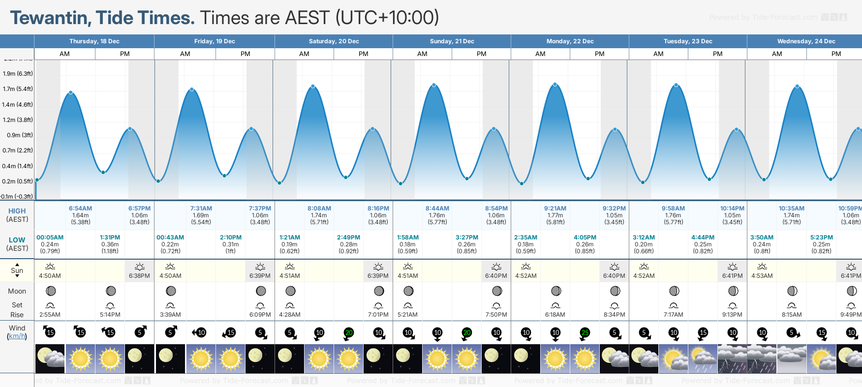 Tide Times for Tewantin: Wednesday 24 December 2025