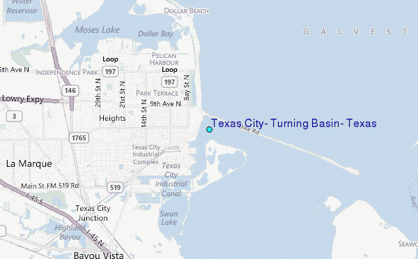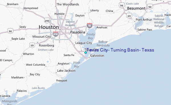 Use this relief map to navigate to tide stations, surf breaks and cities that are in the area of Texas City, Turning Basin, Texas.