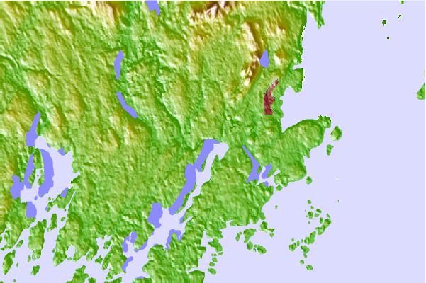 Use this relief map to navigate to tide stations, surf breaks and cities that are in the area of Thomaston, Maine.