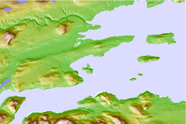 Use this relief map to navigate to tide stations, surf breaks and cities that are in the area of Ticoralak Island, Labrador.