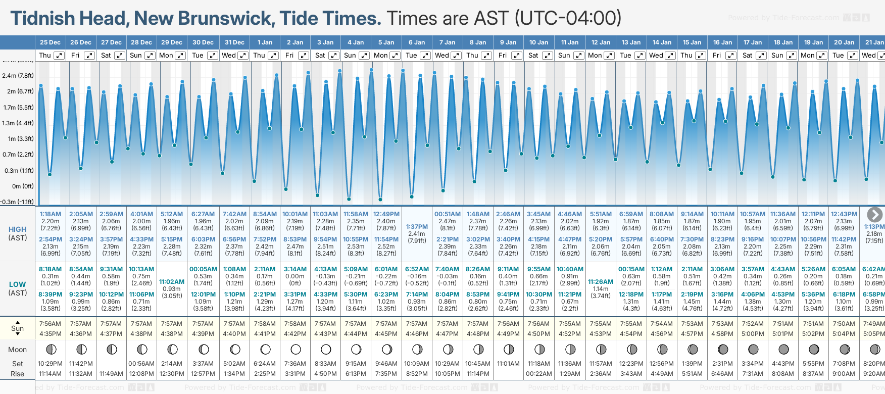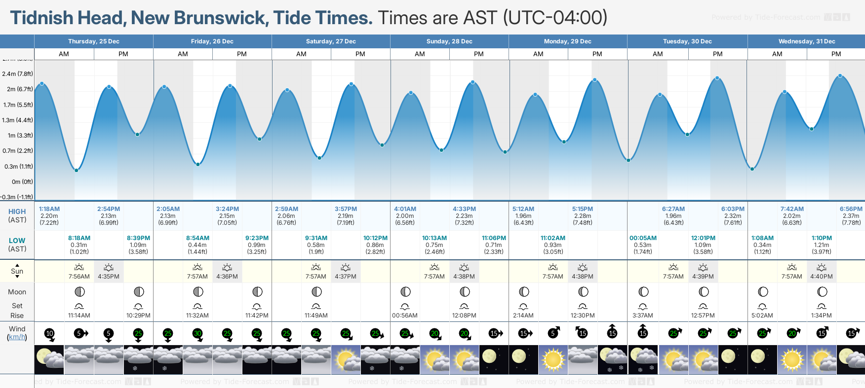 NOTE: Use of this site for Tidnish Head, New Brunswick tide times is subject to our terms.