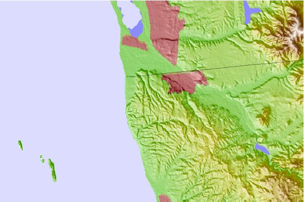 Use this relief map to navigate to tide stations, surf breaks and cities that are in the area of Tijuana.