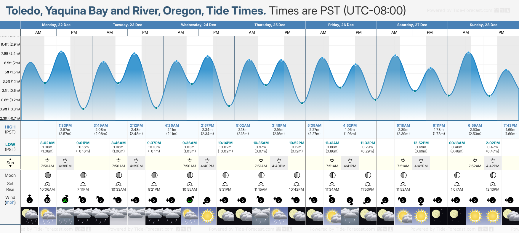 Tide Times for Toledo, Yaquina Bay and River: Wednesday 24 December 2025