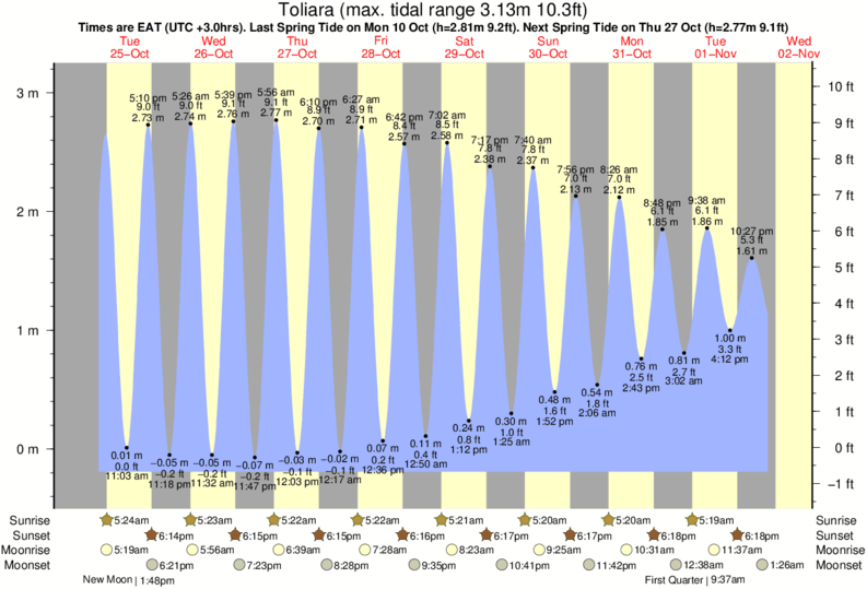 Tide chart for ToliaraShowing low and high tide times for the next 30 days at Toliara. Tide Times are EAT (UTC +3.0hrs).
