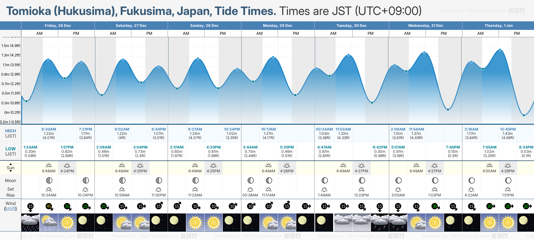 Today's tide times for Tomioka (Hukusima): Friday 26 December 2025
