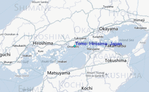 Use this relief map to navigate to tide stations, surf breaks and cities that are in the area of Tomo, Hirosima, Japan.