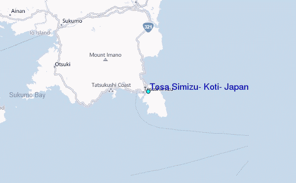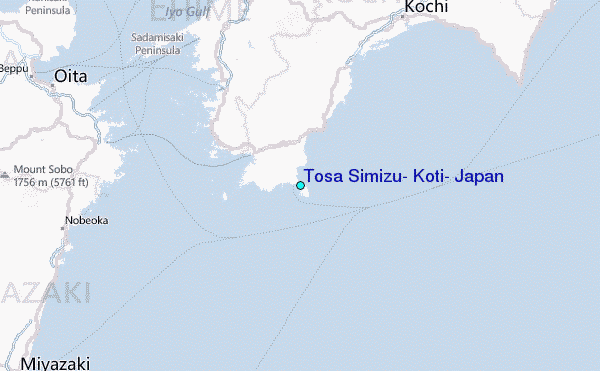 Use this relief map to navigate to tide stations, surf breaks and cities that are in the area of Tosa Simizu, Koti, Japan.