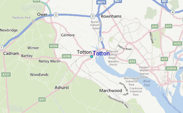 Use this relief map to navigate to tide stations, surf breaks and cities that are in the area of Totton.