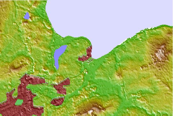 Use this relief map to navigate to tide stations, surf breaks and cities that are in the area of Travemunde.