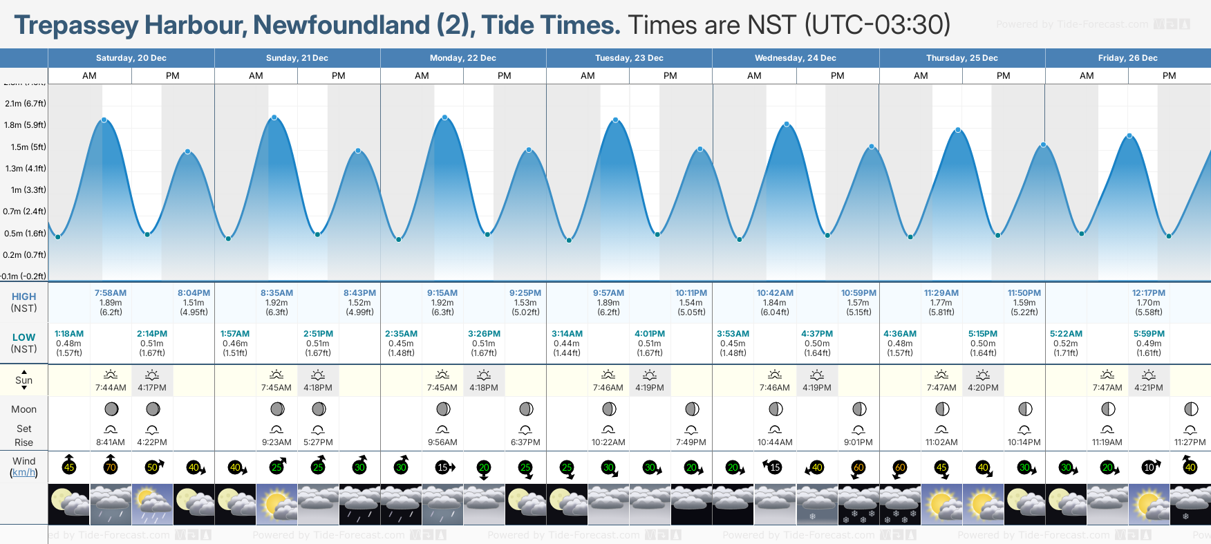NOTE: Use of this site for Trepassey Harbour, Newfoundland (2) tide times is subject to our terms.
