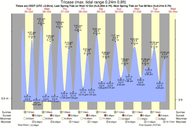 December and January Tide charts for Tricase: The tide charts below show the height, time and date of high and low tides for the next 30 days.