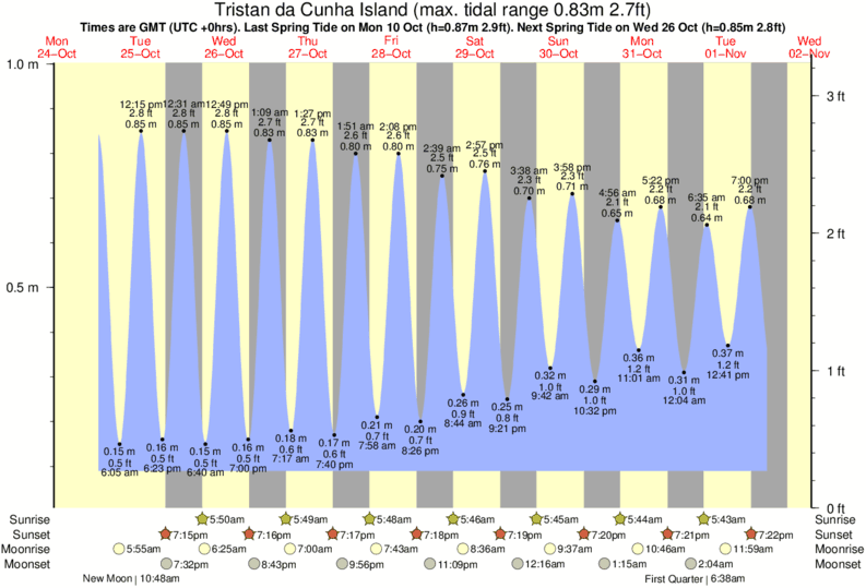 December and January Tide charts for Tristan da Cunha Island: The tide charts below show the height, time and date of high and low tides for the next 30 days.