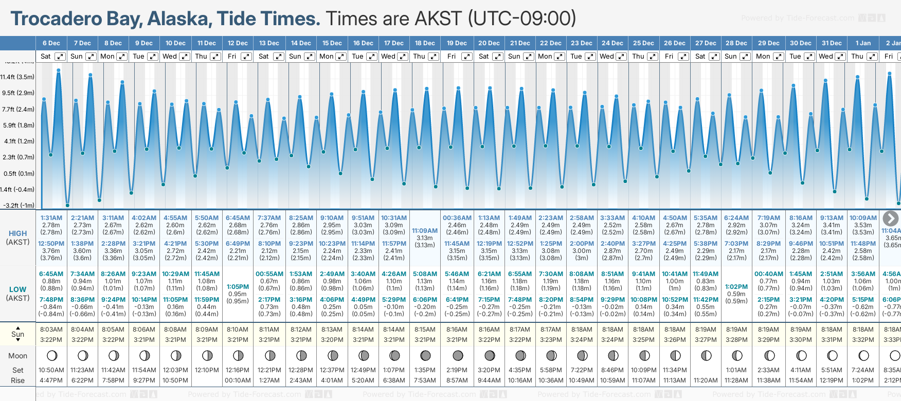 NOTE: Use of this site for Trocadero Bay, Alaska tide times is subject to our terms.