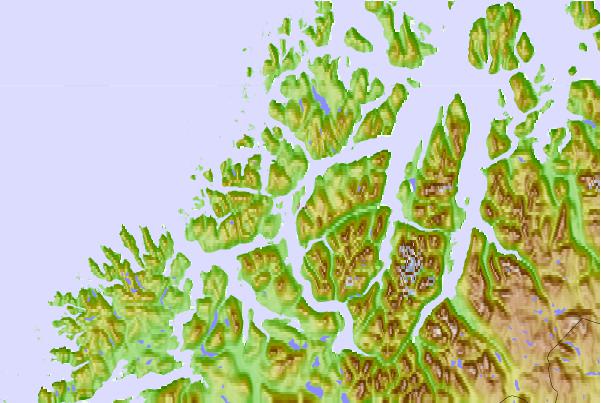 Use this relief map to navigate to tide stations, surf breaks and cities that are in the area of Tromso, Norway.