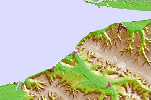 Use this relief map to navigate to tide stations, surf breaks and cities that are in the area of Trouville-sur-Mer.