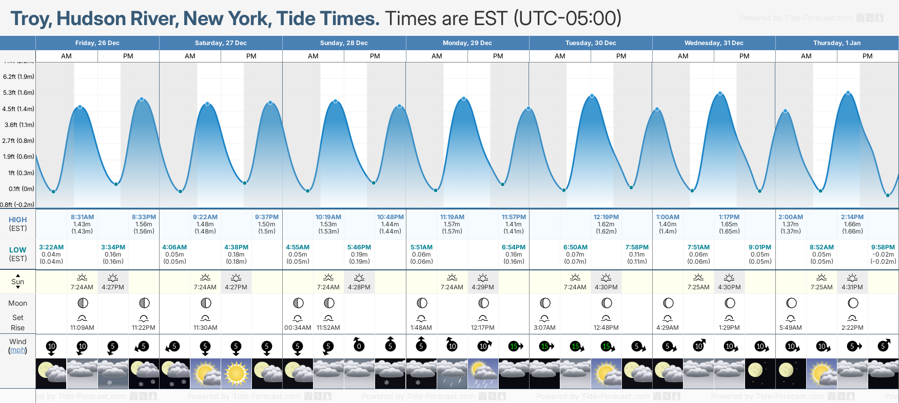 NOTE: Use of this site for Troy, Hudson River, New York tide times is subject to our terms.
